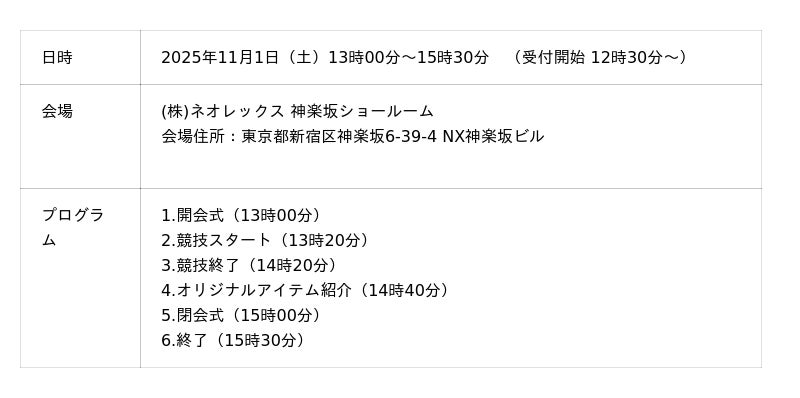 2025年11月1日(土)13時00分~ 場所:(株)ネオレックス 神楽坂ショールーム