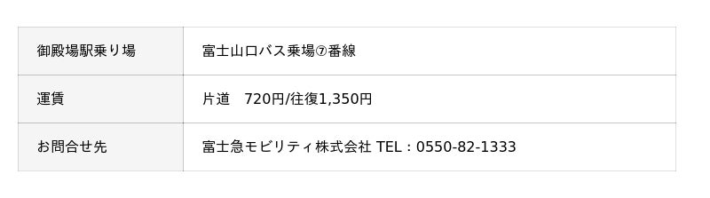特にJR御殿場駅前、富士山口乗り場から出発するシャトルバスは、乗車時間約30分でお子様連れにオススメです。