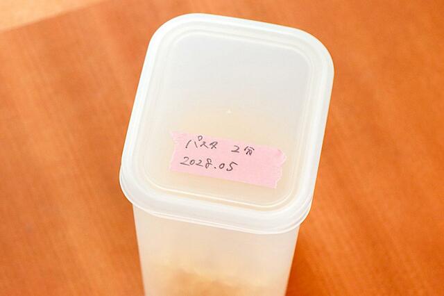 私は別途、賞味期限や茹で時間をマステに書いて貼るようにしています。
