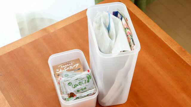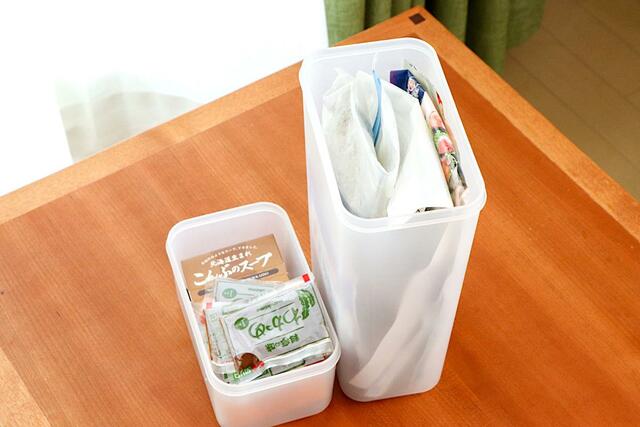 細々としたスープ類は710mLに、おにぎり用の海苔や出汁用の昆布などは2.2Lに入れるとぴったり。