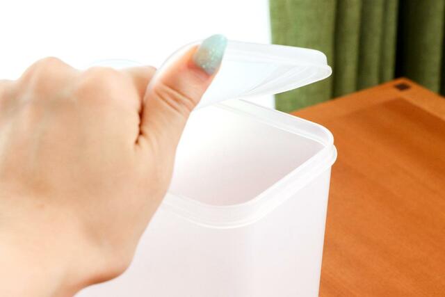 フタを閉めた状態でも中身や残量がわかるのが便利で、買い足すタイミングがわかりやすくなりました。