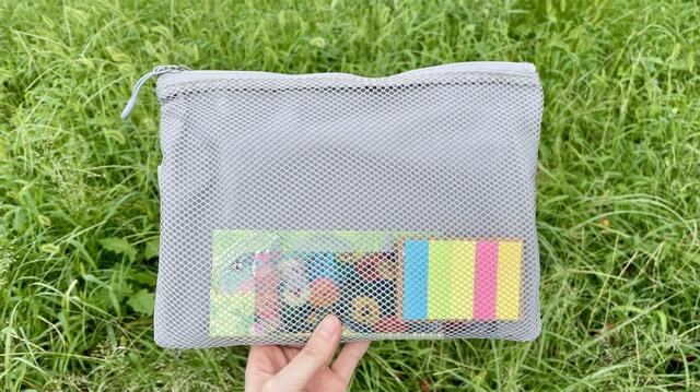 ノートに感想をまとめることも多いので、付箋やしおり、ペンなどをまとめて入れたいと思っていたんです。