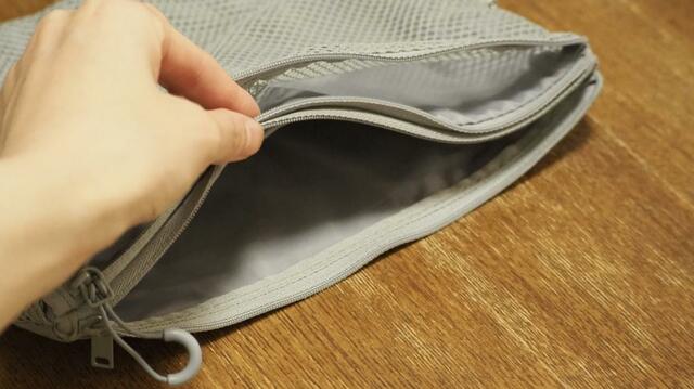 メッシュ生地と中身が見えない生地の二面になっており、さまざまな用途に合わせて使えます。