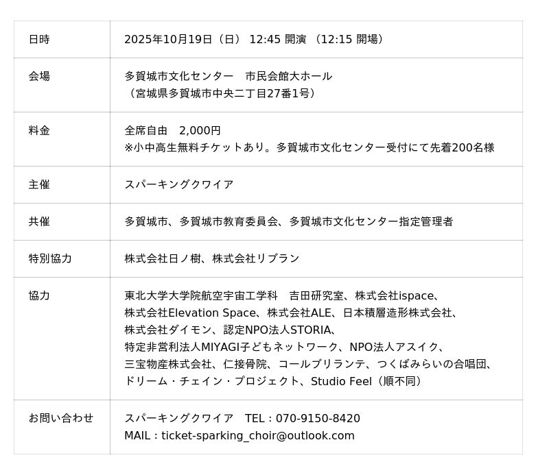 宮城県多賀城市で10月19日(日)開催、オペラ歌手プロデュースコンサートに宇宙展示も