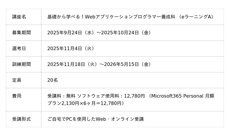 ■基礎から学べる! Webアプリケーションプログラマー養成科とは
