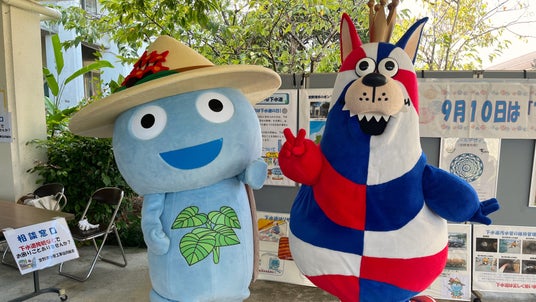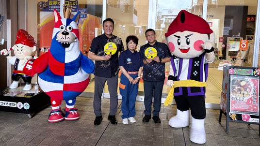 また、宜野湾市役所前で開催された「下水道の日」にちなんだイベントや、沖縄市ミュージックタウン音市場での「沖縄市福祉まつり」にも参加しました。宜野湾市上下水道局マスコットの「みじたまくん」や沖縄市PRキャラクター「エイ坊」と共演し、開幕告知のうちわやチラシを配布し、福祉団体のブースを訪問するなど、多くの方々と交流しました。