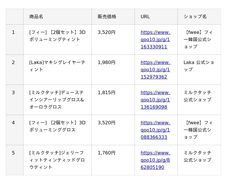 インターネット総合ショッピングモール「Qoo10」を運営するeBay Japan合同会社(本社:東京都港区、代表取締役:グ ジャヒョン)は、Qoo10で人気のコスメカテゴリーの中から、『リップ』『アイシャドウ』『チーク』と、月替わりで1アイテムをピックアップした、月間販売数TOP5※をご紹介していきます。