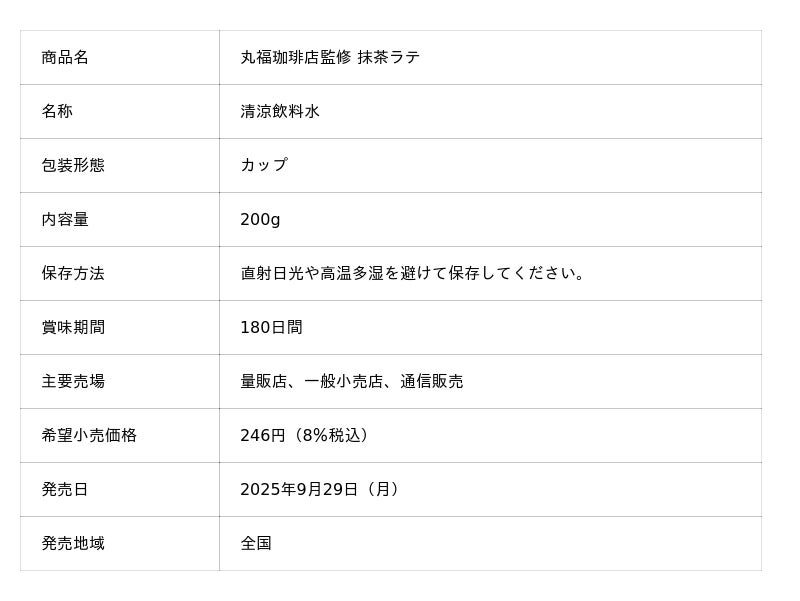 メロディアン株式会社(本社 大阪府八尾市、社長 中西優紀雄)は、京都産宇治抹茶を100%使用した「丸福珈琲店監修 抹茶ラテ」を、2025年9月29日(月)より全国で発売いたします。