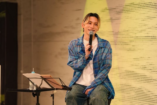 東京・六本木のボートレース発信拠点・SIX WAKE ROPPONGIにて『DIVE TO THE NEW WORLD』の公開収録が開催。普段はアーティストをゲストに迎えて、音楽トークに花が咲くことが多い番組だが、この日のゲストは、少し普段とは違う毛色の様子。それゆえ、会場も普段より少し緊張気味。これには「“こんなに無音?”ってくらい、びっくりしちゃった」とSKY-HIはコメントした。そして、登場したのは、この日のゲスト小嶋陽菜。SKY-HIとのラジオでのコラボは約3年ぶりとのこと。しかし、この間にも経営上の悩み相談をすることなどがあったのだそうだ。