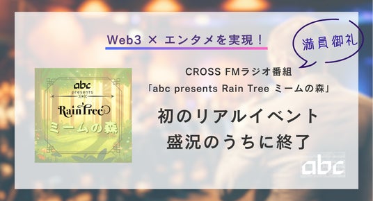 abc株式会社当社(本社:東京都港区 代表取締役 松田 元、以下、「当社」といいます。)は、2025年9月19日(金)、東急プラザ銀座屋上「The Mint Ginza(ザ ミント ギンザ)The Garden」にて、CROSS FMラジオ番組「abc presents Rain Tree ミームの森」初の特別リアルイベント「トークイベント in 銀座」を開催し、盛況のうちに終了いたしました。