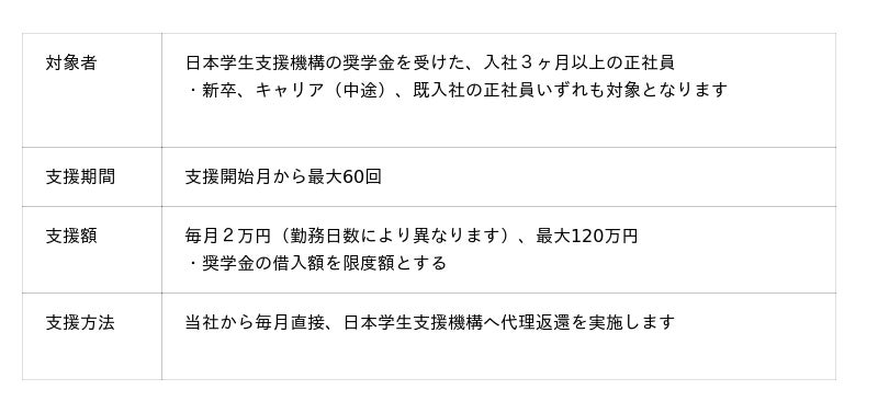 当社は、2025年9月25日開催の取締役会において「奨学金返還支援(代理返還)制度」を新たに導入することを決議いたしました。本制度は、在学中に日本学生支援機構の奨学金制度を利用していた従業員に対し、日本学生支援機構に代理で返還するもので、支援対象となる従業員の経済的・心理的負担を軽減する目的で、福利厚生制度の一環として導入いたしました。また、採用活動における優秀な人材の確保へと繋がることが期待されます。