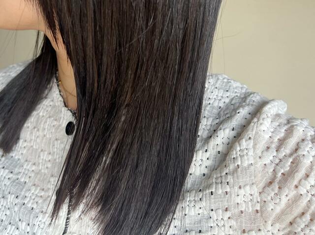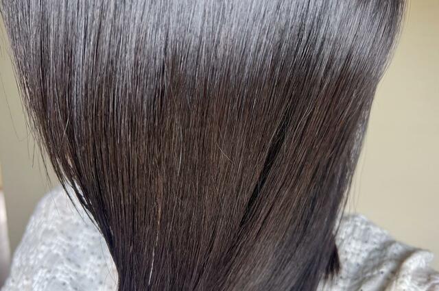 使い始めて1週間ほど経ち、毛先までつるんとまとまりながら、サラサラ感もある仕上がりに大満足!