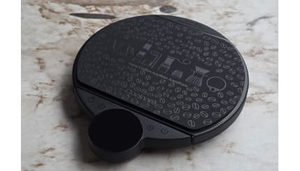 計量皿には、オール樹脂製でボーダー状パターンのデザインを採用し、珈琲粉や汚れを落としやすいシンプルなデザインに仕上げた。あわせて、バッテリー容量や本体の素材を見直すことで、「Balance」と比較して約80gの軽量化を実現し、持ち運びしやすくなっている。さらに、電源や設定のボタンを刻印仕様にすることによって視認性を高めた。
