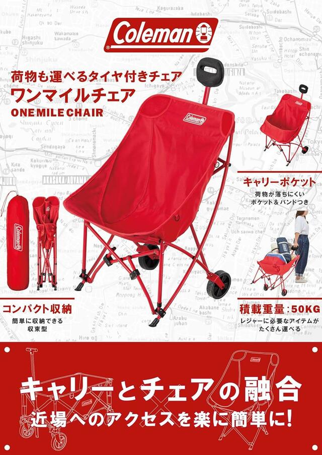 キャンプやピクニック、BBQに最適な「キャリー」と「チェア」が一体になった、Coleman(コールマン)の「ワンマイルチェア」が、Amazonにて33%オフで販売中!