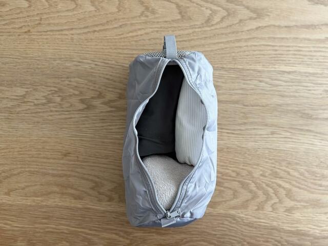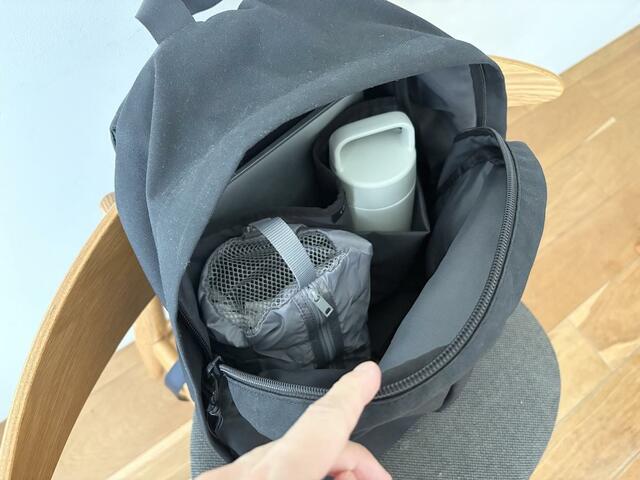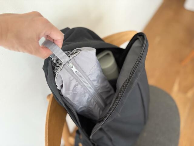 くしゃっとならずに形を保って収まってくれるので、他のアイテムも適所に収まり、バックの中が自然と整います。
