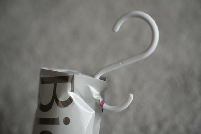 この隙間に付属のS字フックを通すことができ、浴室にあるバーなどに引っ掛けておくことができます。