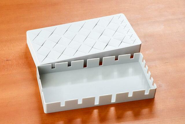 切り込みのサイズが2種類あるので、細いアイテムも倒れないのが便利です。