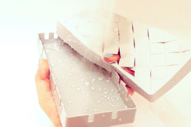 本体は、ばつ印のように切り込みの入ったシリコーンカバーと、ABS樹脂製の受け皿からできています。