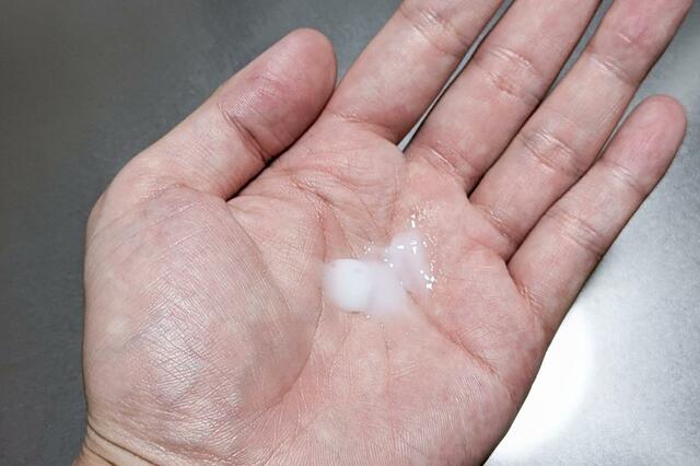 手に出してみるとベタつき感の少ないテクスチャー。