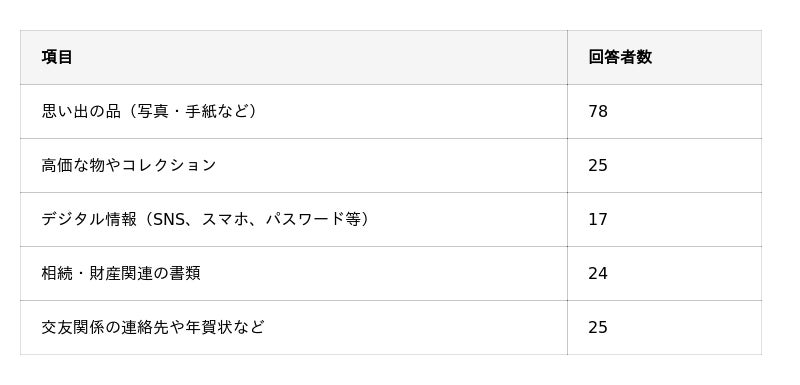 生前整理で扱いに困ると感じるものは何ですか?(複数回答可能)