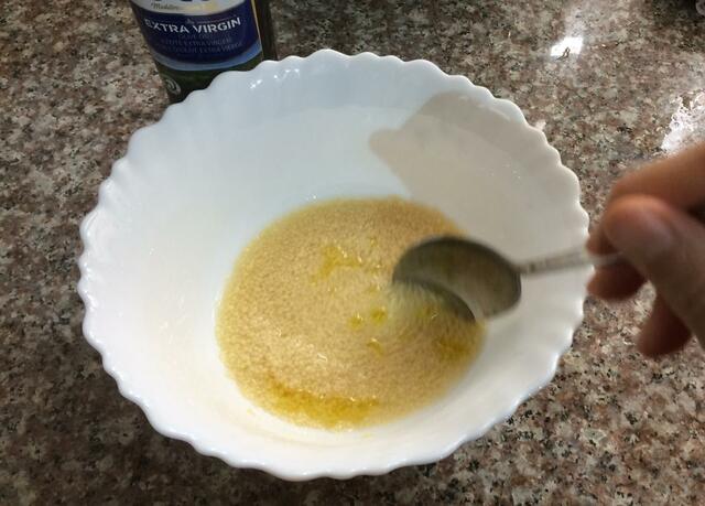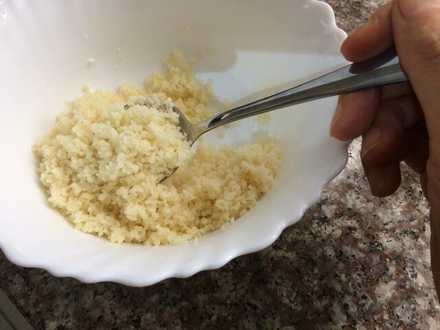 オリーブオイルを入れて軽くかき混ぜるとダマになりにくいのですが、マイケルさん曰く「熱湯がすべて吸収されるとクスクスは蒸気を出す」ため、蒸らす前にすばやくオイルを入れてかき混ぜるのが良いそうです。