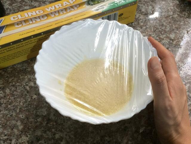 ラップをかけて待つこと5〜10分。蒸らす時間はお好みで調整しましょう。