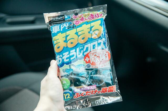 汚れが目についたときにパッと拭けるよう、車に常備しているのがプロスタッフの「車内まるまるおもいっきりおそうじクロス」。