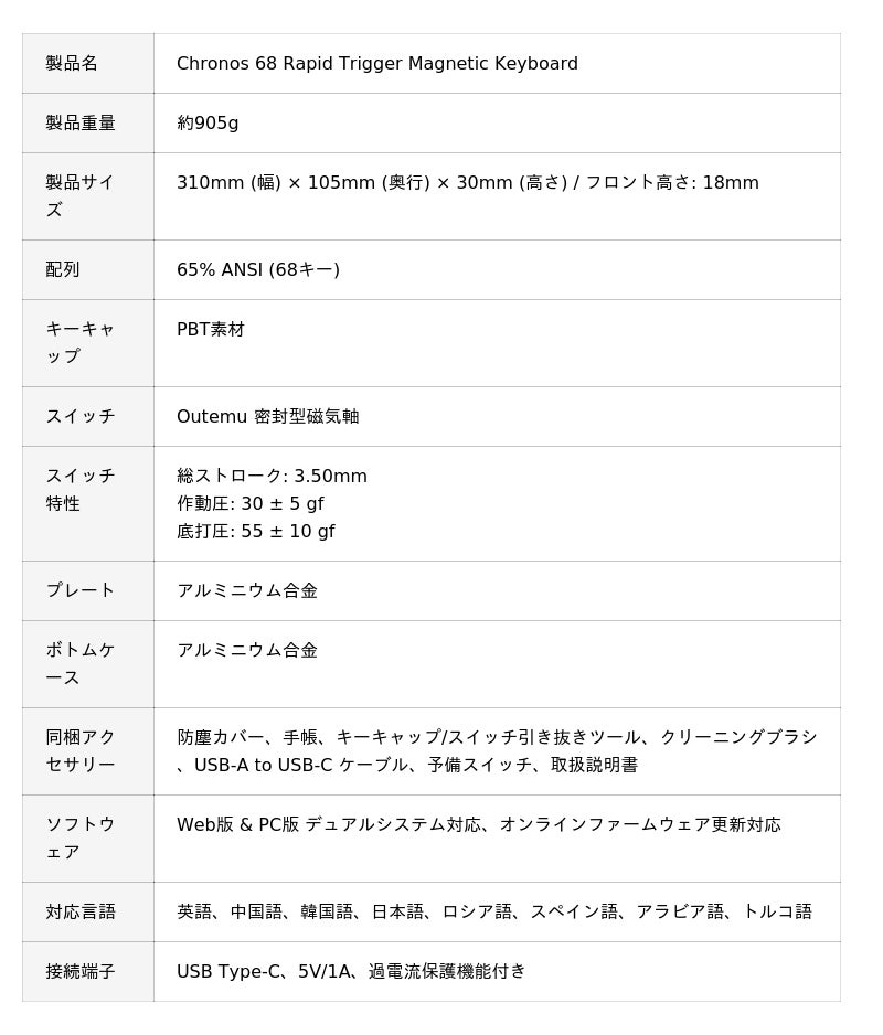 「Chronos 68 Rapid Trigger Magnetic Keyboard」 製品概要