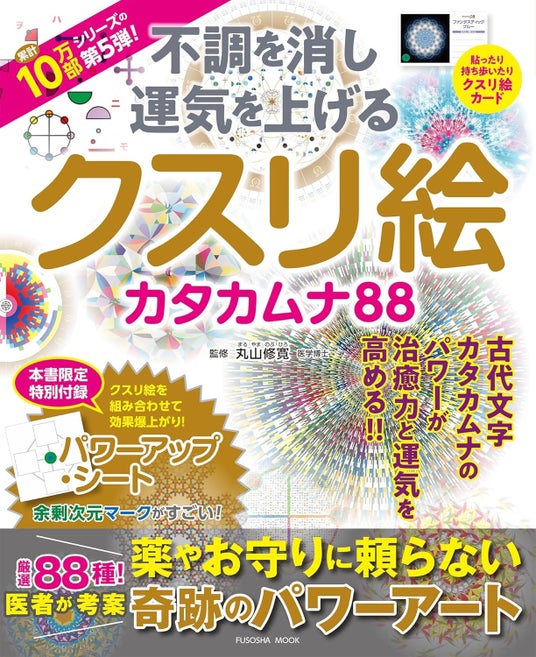 丸山修寛氏の最新刊『パワーアップシート付き! 不調を消し運気を上げる クスリ絵 カタカムナ88 』で掲載するクスリ絵は、体験者からの反響が大きい日本の古代文字・カタカムナの要素を取り入れた図柄のみ! さらに、付録には、組み合わせることでより大きな効果を期待できるパワーアップ・シートを収録。