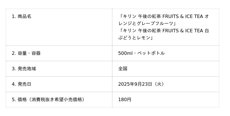 キリンビバレッジ株式会社(社長 井上一弘)は、紅茶飲料売上本数No.1ブランド※1「キリン 午後の紅茶」から、9月23日(火)に発売された「午後の紅茶 FRUITS & ICE TEA オレンジとグレープフルーツ/白ぶどうとレモン」の2品の発売を記念して、その魅力を多くの方々にお届けするため、「午後の紅茶 FRUITS & ICE TEA オレンジとグレープフルーツ/白ぶどうとレモン」いずれかと、「午後ティーフルーツバッグ」を配布するイベント「午後の紅茶 FRUITS & ICE TEA STAND」を2025年10月11日(土)より3日間限定で東京・名古屋・大阪の3都市にて開催します。