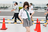 また、大きな囲みでは中国のコスプレイヤー・黎狱(リーユウ)さんも人気。黎狱さん(@Liyu0109)はバーチャルYouTuberのキズナアイのコスプレで参加していて、終了時間ギリギリまで防災公園にいらっしゃいました。こちらもすごく大きな囲みができ、盛り上がっていました。