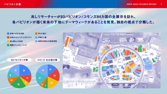 2.93パビリオン/コモンズ94カ国の全展示には、テーマウィークが下地にあることを発見。多様な未来がプレゼンテーションされていた。(図表2.)