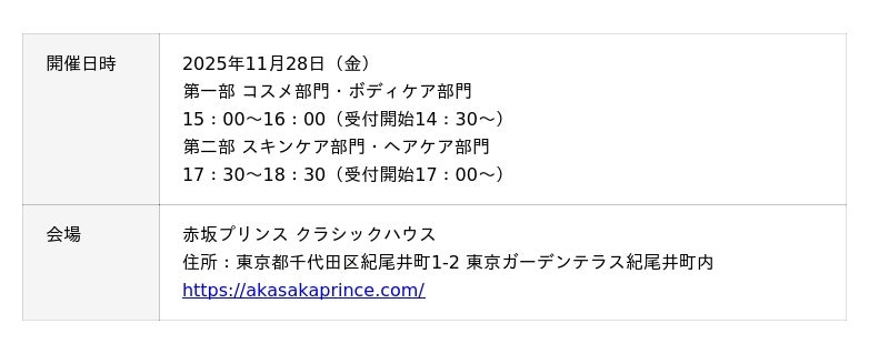 2025年11月28日(金)「赤坂プリンス クラシックハウス」で開催予定