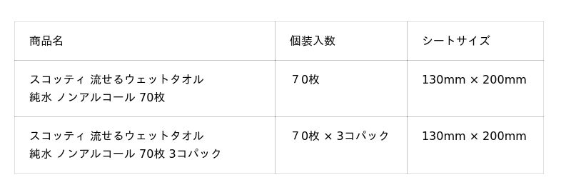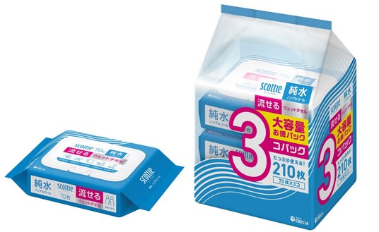 日本製紙グループの日本製紙クレシア株式会社〔住所:東京都千代田区神田駿河台4-6、代表取締役社長:安永敦美〕は、『スコッティ』ブランドから、水に流せるしっかり厚手シートの純水タイプのウェットタオル『スコッティ 流せるウェットタオル 純水ノンアルコール 70枚』を2025年10月1日(水)より新発売いたします。
