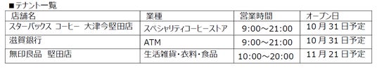 当店は、滋賀県最大の都市である大津市北部に位置し、琵琶湖の対岸にある大津市と守山市を東西で結ぶ琵琶湖大橋有料道路に面しています。店舗は食品スーパー「フレンドマート」を中心に、「スターバックス コーヒー」、湖西エリア初出店となる「無印良品」が入店します。また、敷地内には、株式会社カインズの「カインズ 堅田店」が11月中旬頃オープン予定です。なお、店舗の詳細は改めてお知らせします。
