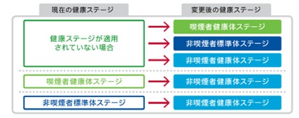 加入時に希望の健康ステージを適用できなかった場合でも、ご契約後の所定の期間内に当社の定める健康状態(1年間以上喫煙歴がないなど)などを満たした場合には、新たに健康ステージの適用もしくは変更ができます。