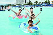 小さい子どもにおすすめのこどもプール。直径20mの円形プールは水深30cmで浅く、プールデビューにももってこい。