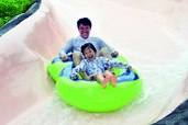 専用の浮き輪に乗って激流下り。左右に豪快に揺れながらエキサイティングなアトラクションを親子で挑戦!