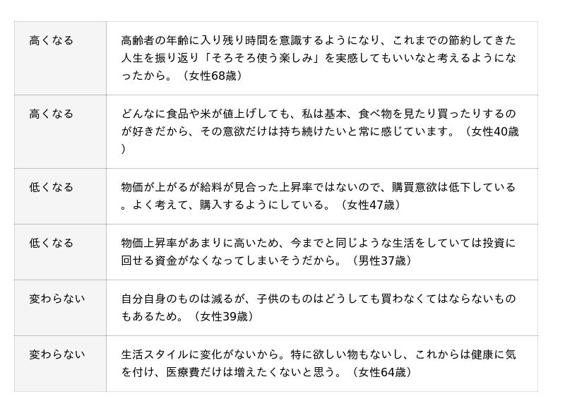 ☆今後1年間の購買意欲が高くなる理由、低くなる理由(全6,702件)