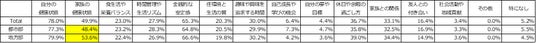 地域別でも上位の順位に差はみられないものの、「家族の健康状態」は地方部の方が高かった。