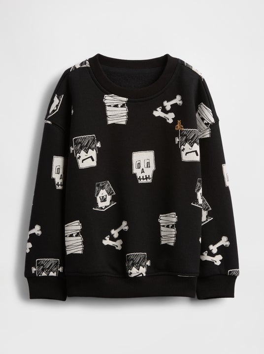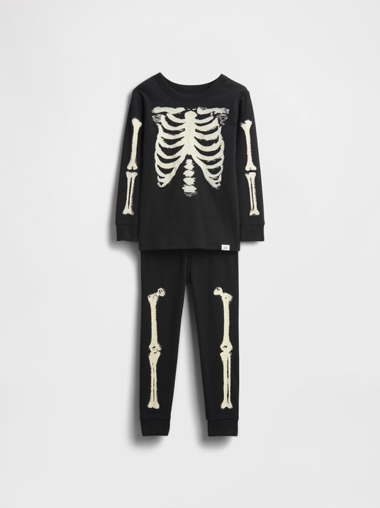 左から) ヴィンテージソフト ハロウィン スウェットシャツ ¥4,990 (※70~110cm展開)、オーガニック ブラッシュドコットン 蓄光プリント パジャマセット ¥3,990、スター・ウォーズ オーガニック ブラッシュドコットン パジャマセット ¥3,990、Gap × ディズニー オーガニック ブラッシュドコットン ハロウィン パジャマセット ¥3,990