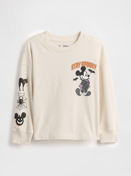 2025年のハロウィンコレクションは、ミッキーマウスやディズニープリンセス、スヌーピーなど人気キャラクターがデザインされたグラフィックアパレルが充実します。キッズボーイズからは、『ナイトメアー・ビフォア・クリスマス』のキャラクターやミッキーマウスの影がお化けになったパジャマパンツが登場。トドラーボーイズは、ミッキーマウスやミッキー、グーフィー、ドナルド、スヌーピー、ウッドストックといった人気キャラクターたちが、ハロウィンらしい遊び心あるデザインで描かれたグラフィックTシャツを展開。さらに、『スター・ウォーズ』のストームトルーパーになりきれるパジャマセットもラインナップします。トドラーガールズは、大人気のプリンセスになりきれるチュールワンピースが全7型ラインナップする他、魔法使いに変身したスヌーピーのGAPロゴTシャツも並びます。