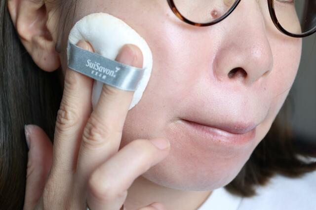 こうすることで、余分に肌につくのを防ぎ、適量をふわっと軽く顔につけられるようになりました。