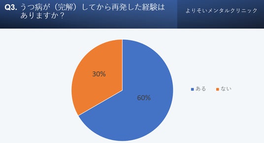 その結果、約60%の方が再発を経験したことから、うつ病の再発率は非常に高いことが分かります。