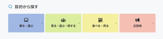 1)目的から探す九州産交グループが提供するサービスを、上記の4つに分類し、それぞれの目的に合わせたサービスをご覧いただくことができます。