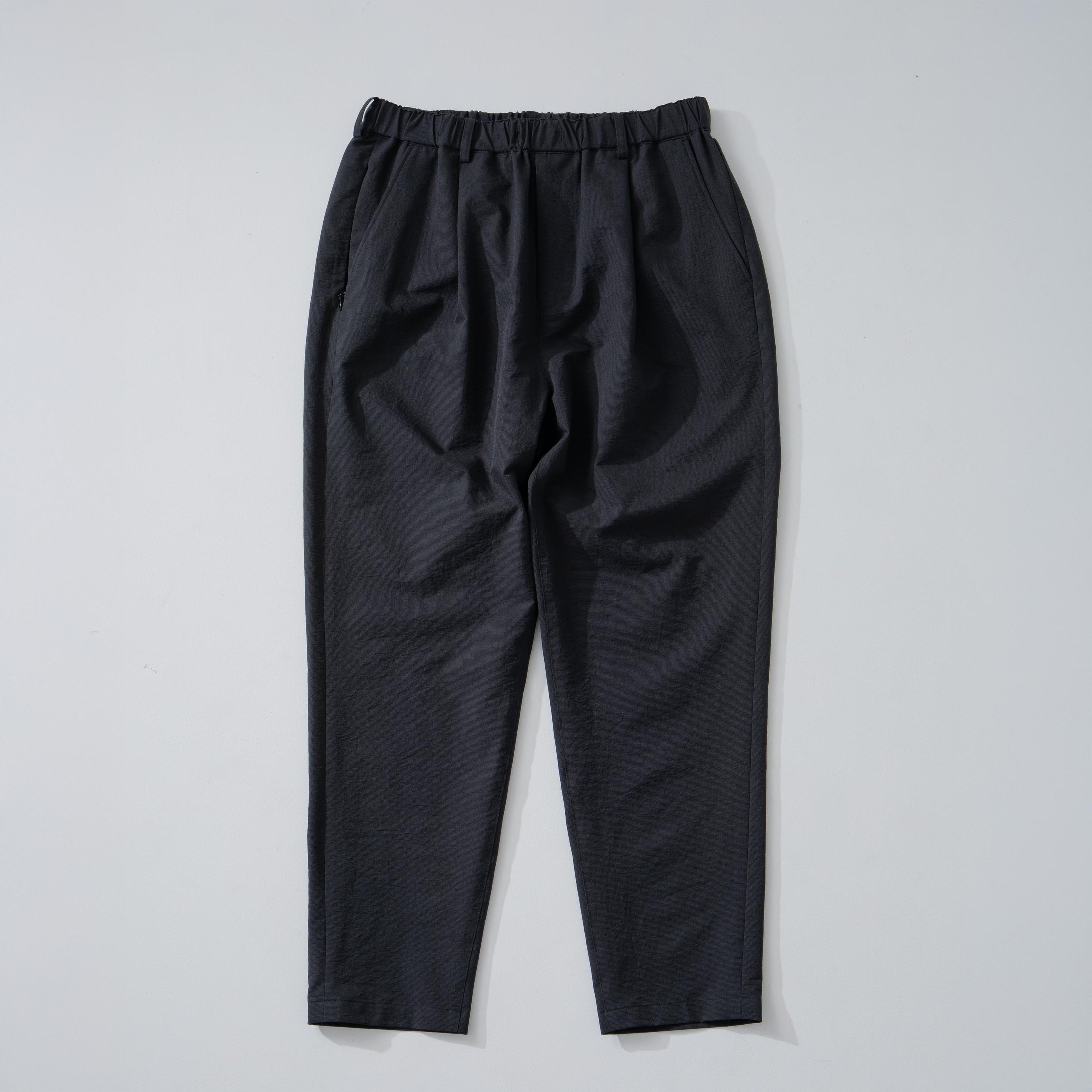 特徴:独自素材「ultimex」を使用した、ワンタック入りのややゆったりシルエットのイージーパンツ。ウエストの紐は内側でも外側でも結べる仕様。