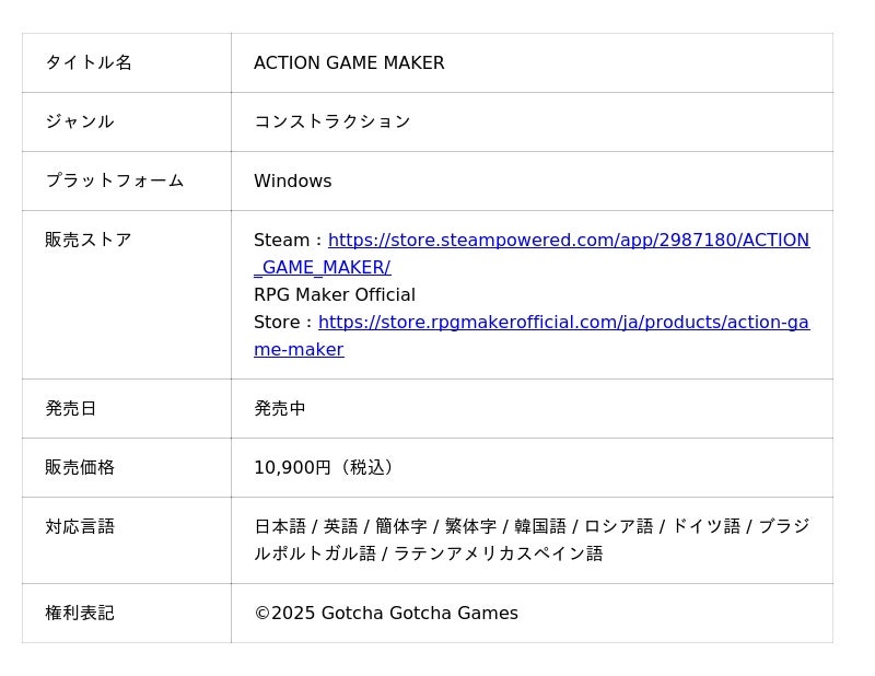 Steamストアページ:https://store.steampowered.com/app/2987180/ACTION_GAME_MAKER/