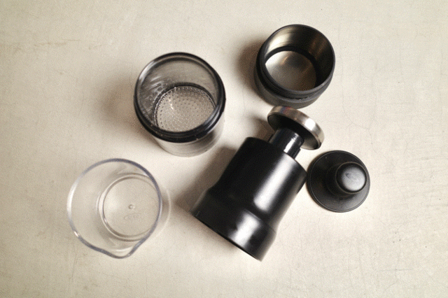 そのちょっとユニークな抽出方法はとっても簡単。なんとコーヒーの粉と水(またはお湯)をセットし、数分待ってからポンプを押すだけ。