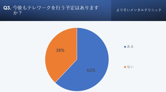 その結果、約62%の方が「ある」と答えており、テレワークの業務は今後も続いていくと分かります。