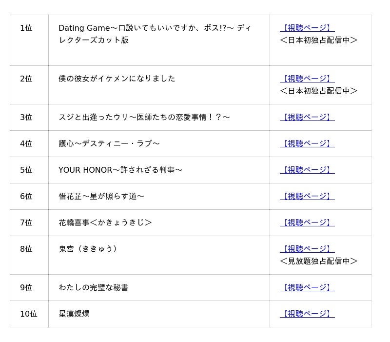 韓流・アジアコンテンツにおける人気作品2025年8月ランキング第1位には、『Dating Game~口説いてもいいですか、ボス!?~』ディレクターズカット版が2ヵ月連続でランクイン!